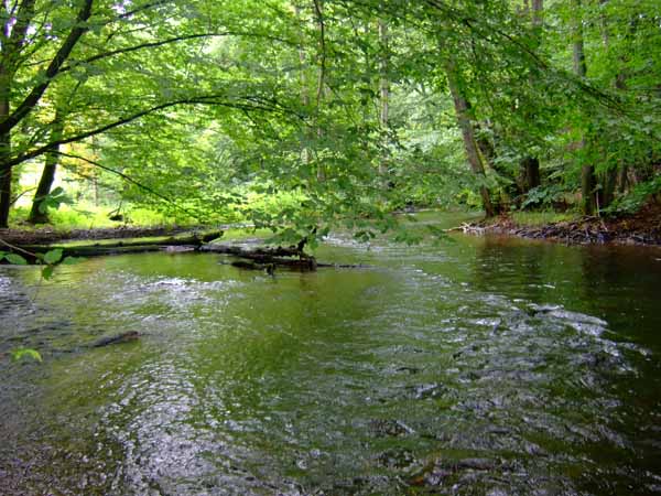 Rzeka dzieli się wyraźnie na kilka części. W górnym biegu łączy 5 małych malowniczych jezior: Górne, Krąg, Długie, Głębokie i Małe, następnie przepływa przez jeziora: Prosino, Żerdno, Drawsko, Rzepowskie, Krosino, Lubie, Wielkoe i Małe Dębno. Do miejscowości Złocieniec rzeka jest objęta ochroną w ramach Drawskiego Parku Karjobrazowego. Od wypływu z jeziora Lubie do miejscowości Prostynia rzeka płynie przez teren poligonu wojskowego. Dowódca Jednostki Wojskowej 1965 (78-513 Oleszno k/Drawska Pomorskiego) udziela zgody na organizację spływów kajakowych na odcinku od jeziora Lubie do mostu na drodze Drawsko Pomorskie - Kalisz Pomorski.