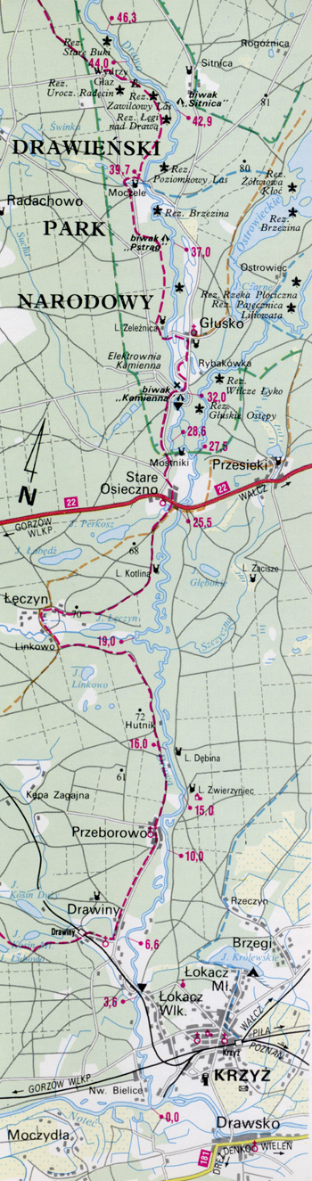 1. Rzeka, numer szlaku kajakowego - Drawa szlak nr 218-8-6